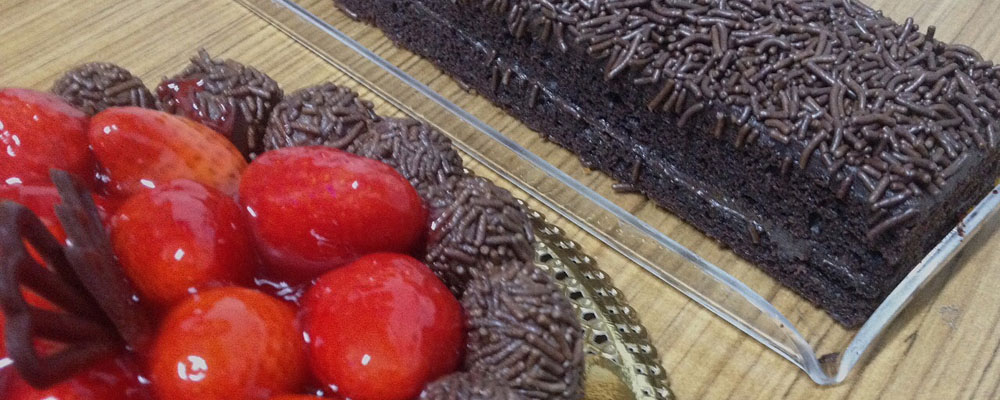 BOLO BRIGADEIRO COM MORANGO